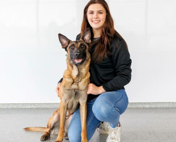 Olivia completed her training with her Belgian Malinois, Cisco, who’s now her loyal adventure buddy. Whether they’re hiking, swimming, or working on new skills, Olivia and Cisco are always finding new ways to grow together.