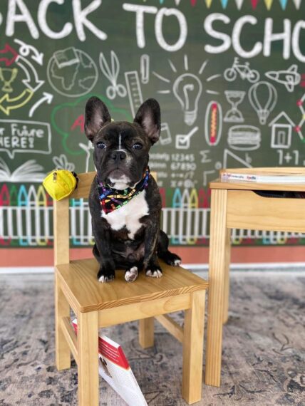 Puppies join us for a semester where they are dropped off at school in the morning for a full day of training, proper exposure, and fun!
